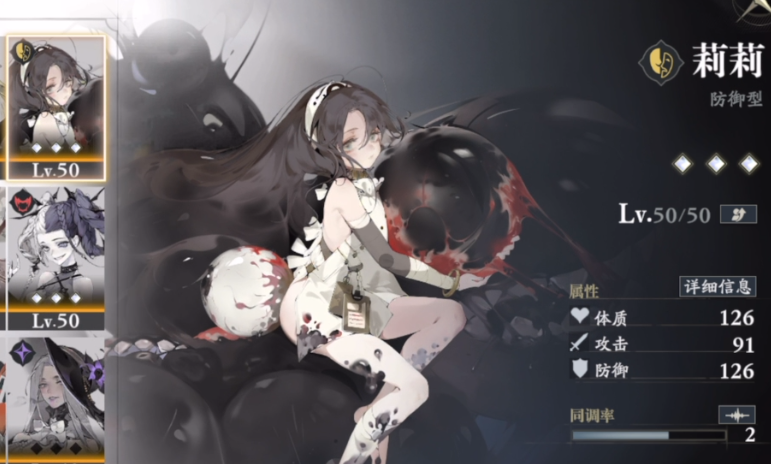 莉莉作为弗朗西斯的女儿,从小就遭受了大量控制,在角色的立绘展现上,可以看到周围到处冲着黑色的眼珠,在眼珠上还会有大量的血迹和牙齿,杰克从小就受到控制,对自身没有主体意识,会希望玩家不断对他下达命令,作为混沌界域里的角色,属于SSR级别稀有,游戏里角色属于防御型角色,可以通过角色活动或者常驻活动唤醒,角色在游戏里的防御值和体质数值都非常高,攻击数值相对来说也很优秀,对战过程中角色会使用狂气爆发淤泥上的不灭之花,让自身获得防御力36%的护盾,恢复忍耐层数10%的生命,接着把忍耐状态移除掉,在忍耐状态下,角色没失去一点生命都会增加一点忍耐。