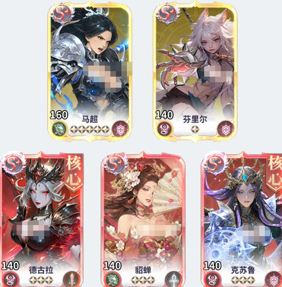 马超是芬里尔最好的助手,也是这套阵容的核心。正如图片中所示的阵容一样,马超一般会担任主C位,有很强的群体攻击能力以及点燃手段。芬里尔和马超一起上场的时候,可以形成“双核驱动”的局面,马超大范围挂火、压低血线,芬里尔定点清除残血目标。两者之间技能机制互相补充,马超AOE点燃给芬里尔提供输出温床,芬里尔高爆发可以阻止敌人用回血技能抵消燃烧伤害,这样的联动效果就是灼烧流成型的要诀。