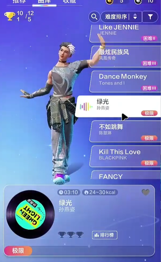 玩家过了常规难度的关卡之后,真正考验玩家的时候到了,极限模式就在这里等着玩家去接受挑战。这是游戏难度体系的巅峰,也是给那些想要玩出极限操作的硬核玩家所设计的。极限模式没有子分级,是最高标准的一种。在此模式之下,手部轨迹变化十分密集,脚步节奏的转换也变得非常频繁,系统对于动作同步率以及时机精准度的判定非常严格。这不但是对体力的考验,也是对玩家心理素质以及瞬间反应能力的一种考验。