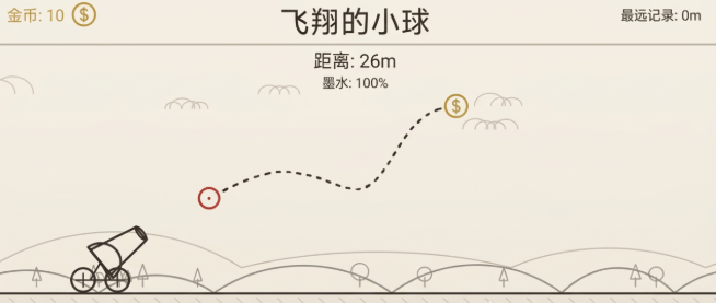 手指在空中画线去引导轨迹,小球在飞行时就会受到重力影响,然后往下掉。这个时候就需要用手指顺着想让小球飞的方向画一条线,小球就会沿着线条改变飞行的路径。往上画就可以抬升高度,往前画就可以延长距离,全程跟着手感走就行。游戏的核心目标是比较明确的,飞得越远越好,沿途还可以收集金币,尽可能的躲开障碍物。飞行路上会散落很多的金币,小球碰到之后就可以自动的收集,解锁新的小球皮肤和特殊的道具。