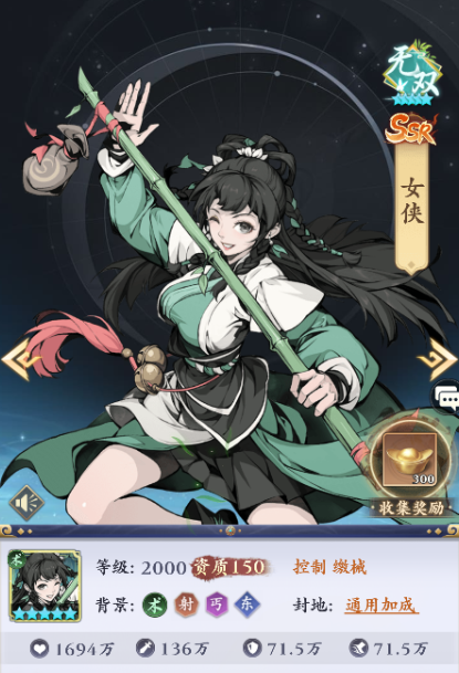 段和誉除输出职能外,还具备短控与怒气干扰能力,可限制敌方关键技能释放节奏。当其与郭小侠共同上阵时,队伍在压制力与持续输出维度均获得结构性补强。而黄女侠则承担团队辅助中枢角色:一方面通过缴械效果瘫痪敌方物理系单位行动能力,另一方面以伤害分摊机制提升后排生存容错率,尤其适配郭小侠、段和誉等高伤但身板偏脆的输出型侠客。三者搭配形成“稳输出—强压制—高容错”的铁三角结构,且三人均为新手期易得角色,获取成本低、培养门槛友好。