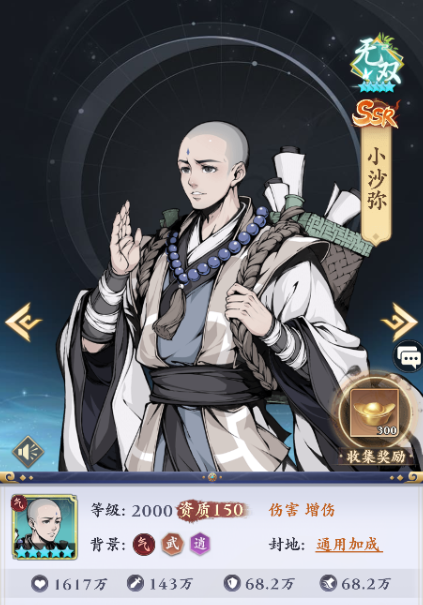 第四位推荐小沙弥。其机制具备高度不可替代性:主动技能可吸取敌方怒气并封锁怒气恢复,直接打断敌方大招循环,在Boss战与PVP对局中战略价值突出。该能力与段和誉形成天然协同——段和誉依赖怒气释放高阶技能,小沙弥则为其稳定供能并反制对手,二者触发专属羁绊后还可额外提升怒气转化效率。因此,小沙弥不仅是功能型补位角色,更是中后期阵容质变的关键拼图。