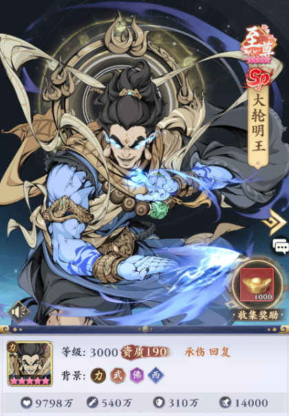 前排承伤位推荐大轮明王。其核心价值体现在双重保障:一是高额减伤与嘲讽控制确保前排站桩稳定性;二是自带生命回复效果,缓解治疗压力,提升持久战续航能力。在郭小侠、段和誉双核输出+黄女侠功能辅助+小沙弥机制压制的体系下,大轮明王作为坚实壁垒,使整套阵容攻防节奏更加均衡,避免因前排崩盘导致输出环境恶化。