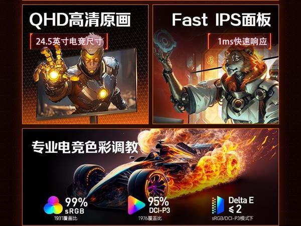 24.5英寸黄金尺寸加持,2K高分辨率搭配320Hz高刷,辅以硬件护眼、专业色准调校多重领先配置,深度贴合“小屏高刷”的硬核玩家诉求,以1299元极具性价比的价格解锁电竞新体验。