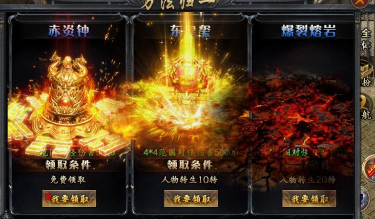 除了上述之外,游戏里面还有一些功能强大的专属神器,激活就送强大的被动和主动技能,比如万法归一赤炎钟,血饮狂刀等,这些大家可根据需要自己选择。