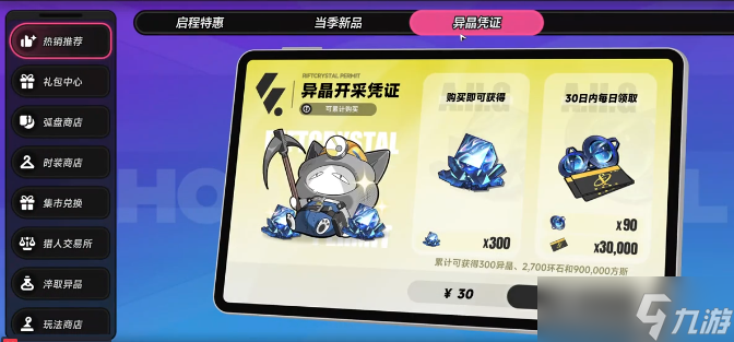 30元的小月卡,建议大家可以关注一下,只需要30元就可以获得300异晶+2700环石,环石是一种重要的货币,在抽卡的过程中是不可以缺少的,因此价值比较高。另外一种道具。异晶还能攒着换心仪时装。另外还有68元以及128元的通行证。68元的通行证还是比较有优势性的,可以让玩家获得猎人奖励,里面除了有月卡武器,还有680环石之外,还有大量的抽卡道,具体力药水以及养成材料。对比单买礼包或者是体力那个自然是更加的划算,所以大家可以关注一下。