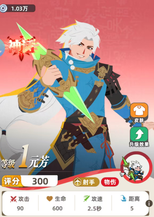 元芳是射手体系中的高成长性核心。基础普攻即为全额伤害,且在一格范围内可弹射两次,实现单回合三次有效输出。其天赋机制支持攻速滚雪球:每次普攻命中均提升10%攻速,持续至本回合结束。该机制使其在前期速攻流中迅速建立压制优势,且攻速成长上限远超同类射手,中后期仍能保持爆发节奏。