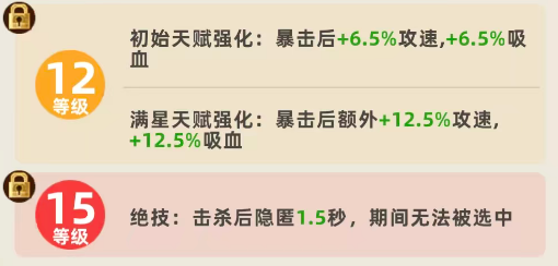 初始状态下,赵云每次暴击可获得5%攻速与5%吸血加成,该效果可叠加且不设上限。这一设计极大缓解了刺客职业普遍存在的生存压力:一方面,攻速提升直接强化输出频率;另一方面,吸血能力使其在缺乏治疗辅助的情况下仍能维持可观续航。当升至满星(三星)时,单次暴击提供的增益将提升至10%攻速与10%吸血,进一步放大其持续作战潜力。