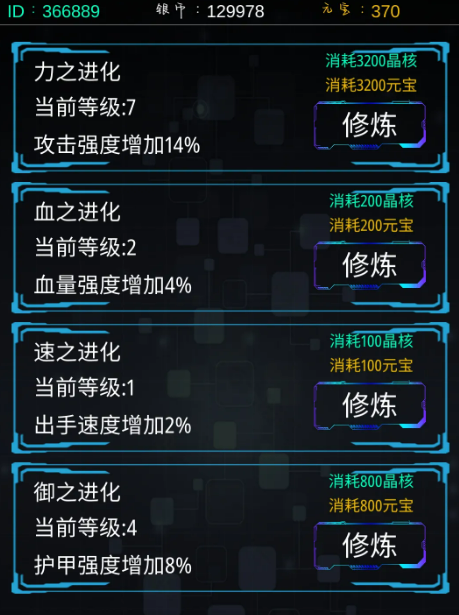 90级开启超凡进化后,升级材料转为晶核与元宝双轨制。推荐维持“超凡进化等级 ≈ 主宰之路等级 ÷ 2”的配比关系。例如主宰之路达16级时,超凡进化同步升至8级即可。主宰之路升至16级后应暂停,超凡进化达到8级后可根据实际需求选择性提升。装备炼化资源分配顺序为:攻击强度 > 属性伤害 > 防御 > 暴击率 > 反击率 > 生命值;速度类属性成长效益偏低,建议最后处理。
