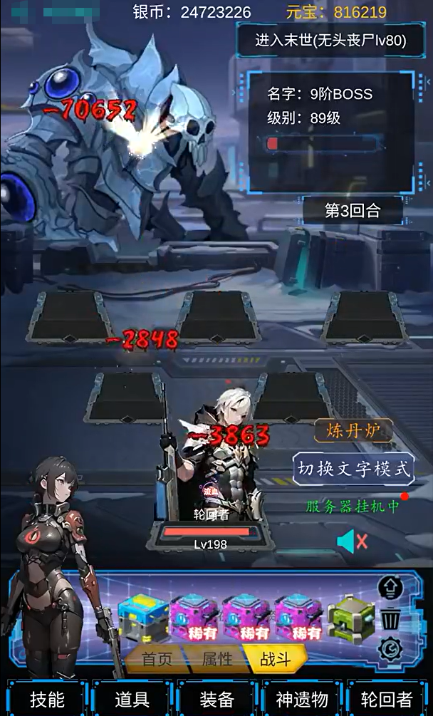 开局即进入末世场景,点击左上角Lv.1地图并选择自动战斗模式即可开启挂机。需特别注意:务必在技能栏配置至少一个主动技能,否则角色将无法释放攻击,导致输出归零。本作采用离线同步经验机制——无论在线或离线,挂机收益完全一致,无需频繁上线刷图。