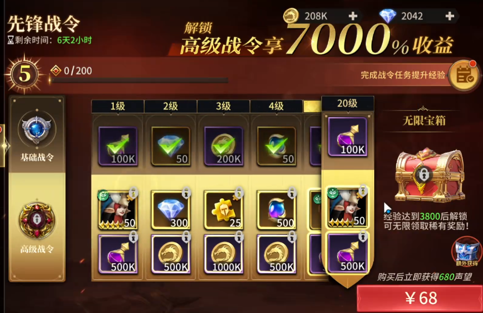 在各类战令中,高级先锋战令综合性价比突出:不仅使每次等级提升所获奖励翻倍,更直接附赠5星角色碎片,大幅缩短高稀有度角色养成周期,快速构建高配主力阵容。