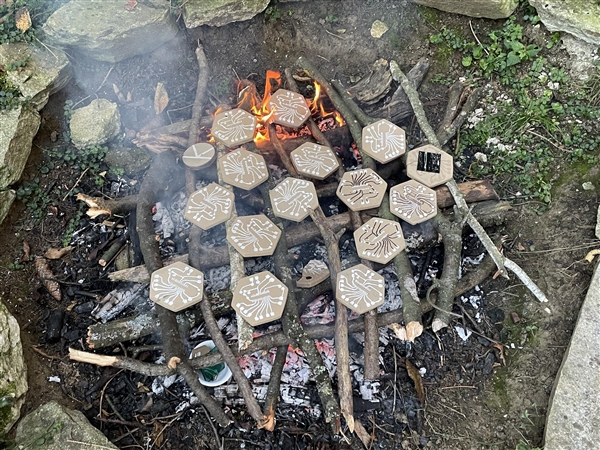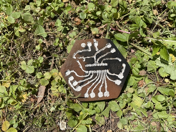 制作过程大致分为几个步骤:采集并调配天然黏土,去除气泡和杂质后压制成约10×10厘米的泥片;用3D打印的模具在泥片上压出电路走线凹槽,凹槽深度约1.5毫米;自然晾干一天后,用银基导电涂料手工填涂走线。