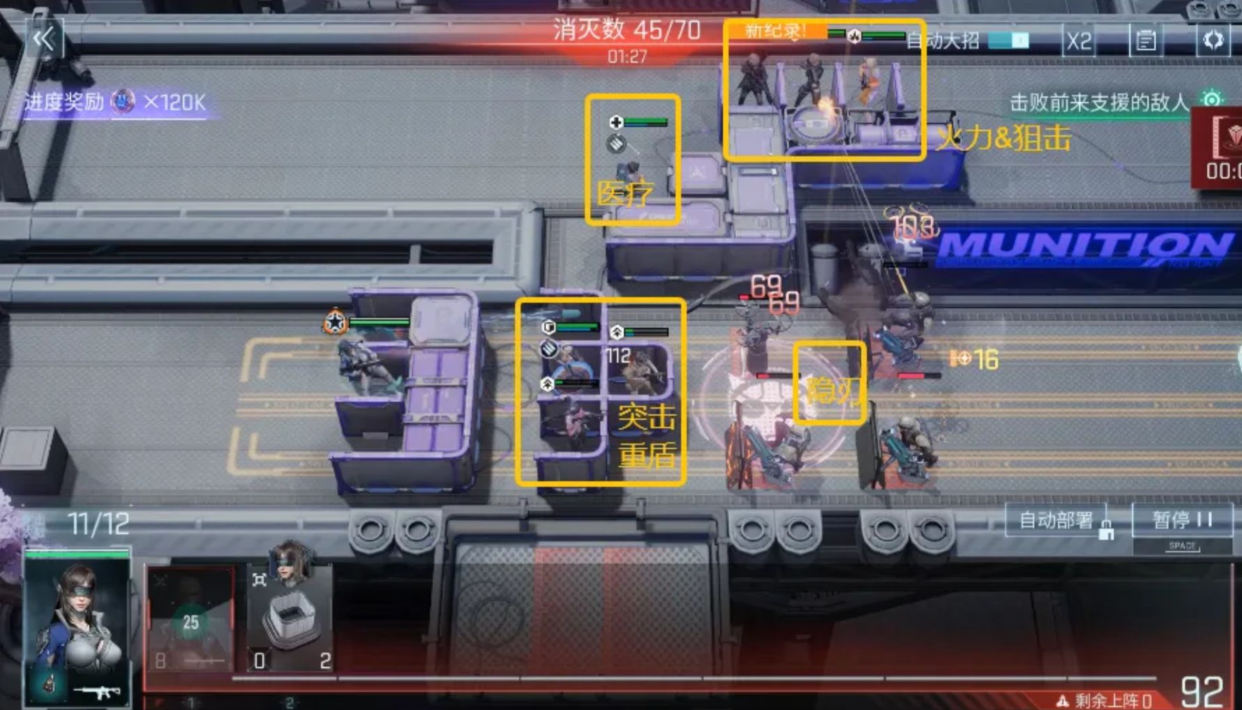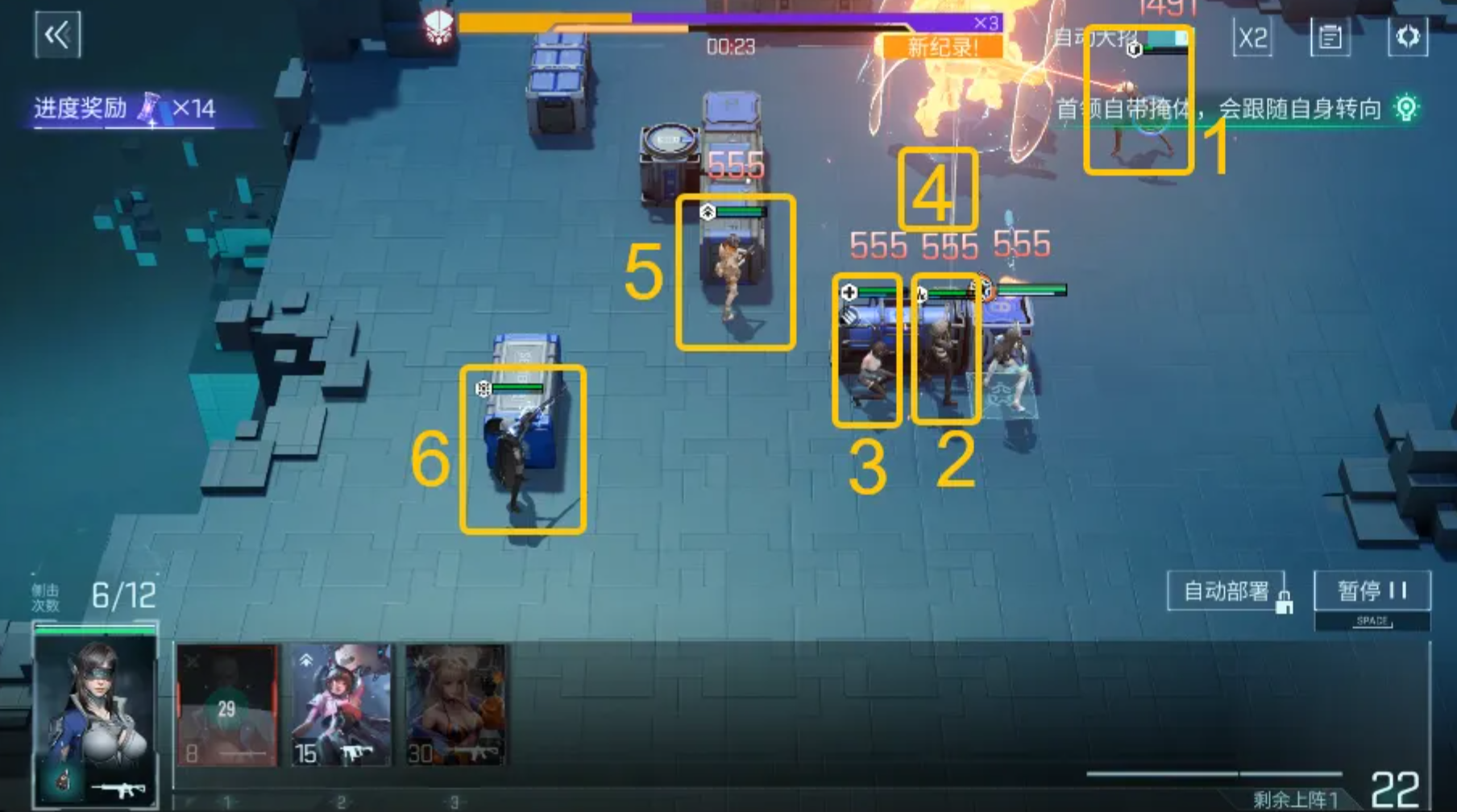 首阶段需在中央部署突击位赫尔达,同步于上方区域配置工程位格拉苏,二者协同可解除BOSS第一层防御屏障;第二阶段须立即在右上方位部署火力位希・西雅,完成第二层弱点打击后,BOSS将进入强制瘫痪状态,持续时间约8秒。此窗口期务必优先清理左下方生成的敌方单位,防止其绕后干扰后排输出阵型。待小兵清除完毕,预留部署费用,在BOSS即将启动下一次区域转移前,提前将其目标落点布防完毕——切忌等待其抵达后再操作,否则将错过关键压制时机。
