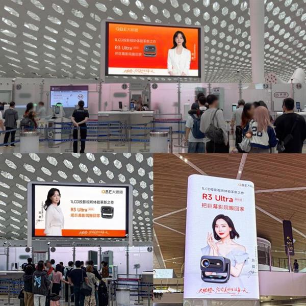 当深圳机场的巨型大屏被一抹温润光影点亮,陈数的优雅身影、大眼橙旗舰新品R3 Ultra与“给你美好生活每一天”的品牌主张同步呈现,往来旅客纷纷驻足侧目。这不仅是一场品牌与代言人的视觉联袂,更是大眼橙以光影为媒、向全民传递美好生活的温情表达。在人来人往的城市门户,大眼橙用兼具质感与温度的品牌表达,让智能投影的科技力量,与每一段出行、每一个日常美好相遇。