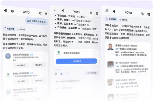 体验的跃升,离不开底层技术的系统化支撑。荣耀YOYO智能体凭借信息结构化服务卡片能力,将健康医疗相关的复杂信息,转化为用户屏幕里直观、可交互的卡片——医院简介、医生介绍、服务入口等信息按标准格式汇总聚合,用户一眼便可看到头像、医生职称和标签等关键内容。这一设计既提升了信息获取效率,又将入口前置,点击即可跳转服务,让用户一看就懂、一点就办。