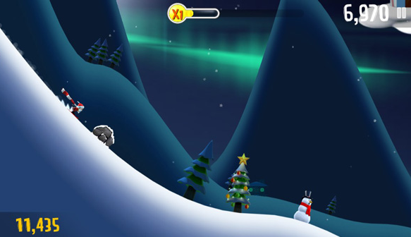 经典跑酷玩法升级版,主打高速动态反馈与低门槛操作。玩家操控角色在雪山斜坡持续滑行,需单指滑动完成跳跃、翻滚、侧滑等动作以规避雪崩、冰裂缝及滚石障碍。场景中穿插雪人、企鹅、北极熊等交互式元素,达成特定连击可激活“极光冲刺”特效。BGM采用八音盒+电子鼓点混编,节奏随速度提升自动变调,强化临场紧迫感。