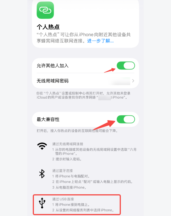 将“允许其他人加入”和“最大兼容性”开关打开;