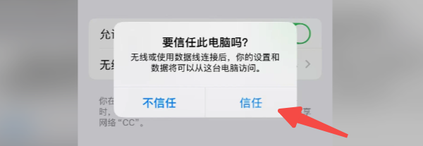 如果是第一次连接,手机上会弹出“要信任此电脑吗?”——点击“信任”,并输入锁屏密码;
