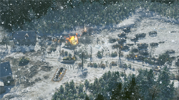 战术自由度得到了前所未有的提升,游戏采用沙盒式任务设计,没有固定的取胜路线,玩家可自由选择战术、单位组合与任务目标,可以集结装甲部队正面强攻,也可派遣侦察兵渗透敌后破坏补给线,还可夺取战地指挥部、补给站、火车站等关键地点,获取弹药、燃料补给或呼叫援军,可玩价值极为丰富。同时,游戏还保留了系列经典的补给机制,弹药、燃料的限制让战场更具真实感:若敌军控制了补给路线,玩家将无法呼叫援军,必须先解放通道才能获得支援;坦克没有燃料会陷入停滞,步兵没有弹药则无法作战。虽然增加了操作复杂度,但这种策略维度正是系列的核心坚守。