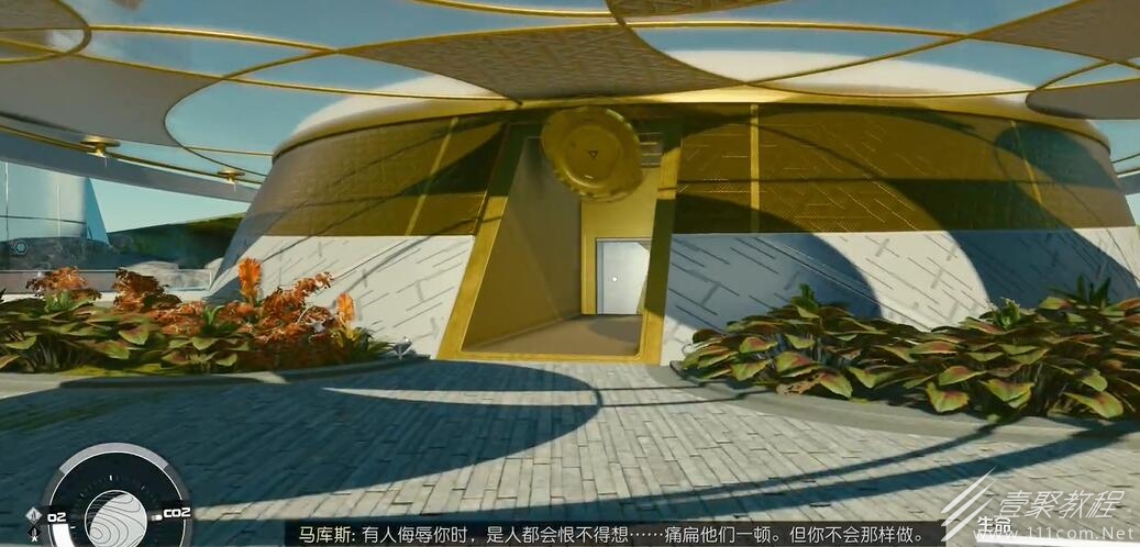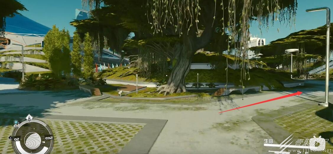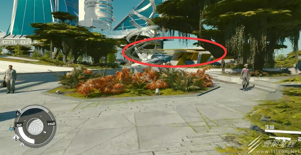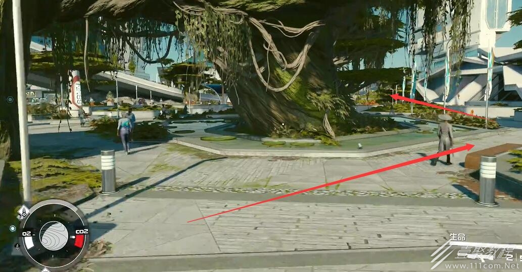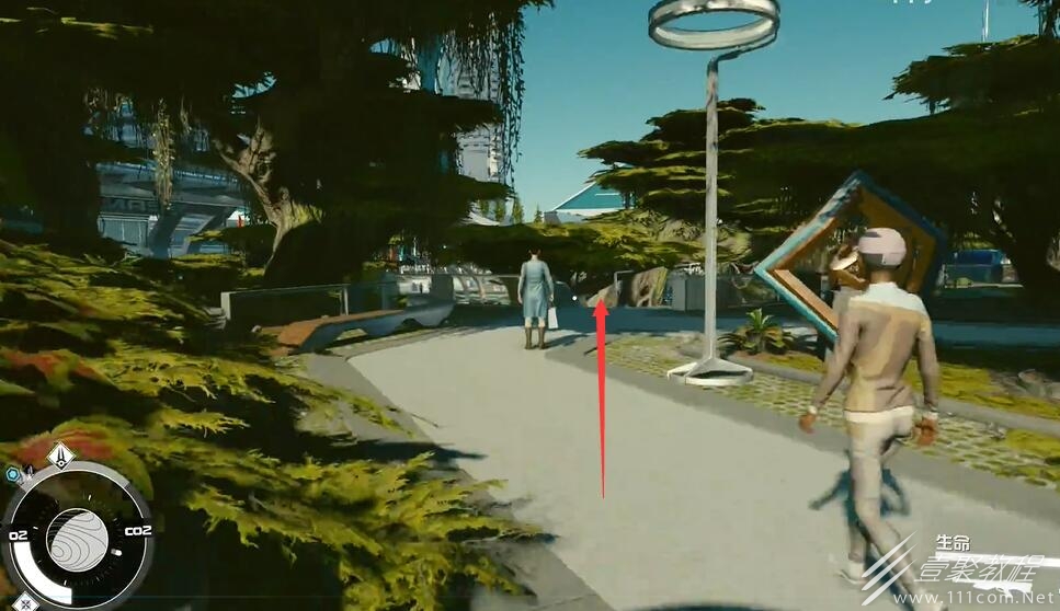 5、在雕像的后方我们能看见一个黄色的建筑,我们需要前往那边。