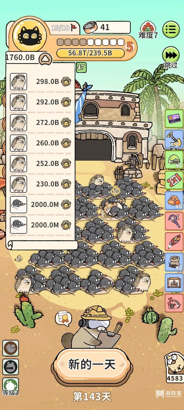 6、后期:③鼩鼱达到1000.0M后删去①垂耳兔和淘气兔,买图五刺猬注意整体金额控制刺猬数量基本成形轻轻松松上几T。