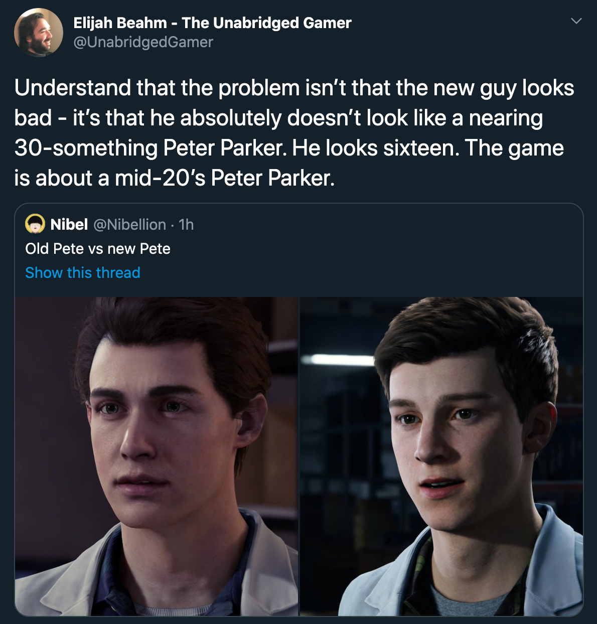 《漫威蜘蛛侠》最早在 PS4 上推出,随后在 PS5 主机上发布了更新增强的“次世代”版本。最大的变化是游戏的次世代版中,彼得·帕克的脸模被进行了修改,让他长得更加年轻,同时也有点像漫威新《蜘蛛侠》电影中的演员Tom Holland。这让许多玩家感到不满。