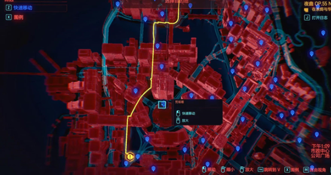 2、从地图上来看,荒坂塔几乎位于地图的中心,这也能够看出荒坂公司在夜之城的地位很高,几乎算是主宰整个夜之城。