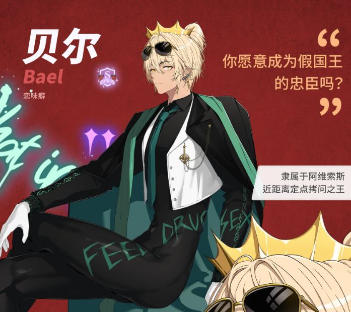 隶属于以巴力西卜为王的<阿维索斯>的S级恶魔。巴力西卜是有名的流浪国王,以离开王室四处游荡而闻名。贝尔则是巴力西卜最好的朋友,甚至连性取向都一样。 巴力西卜不在的时候,他会代替他担任国王的角色。他总是化为巴力西卜的模样,代替时刻面临被天使暗杀的好友对抗入侵阿维索斯的天使。