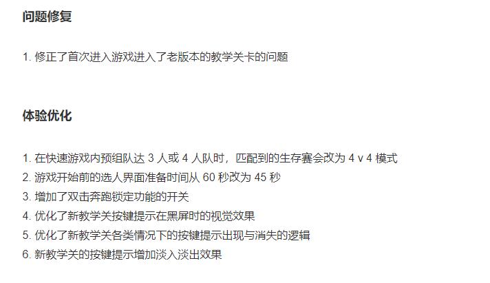 在快速游戏内预组队达3 人或 4 人队时,匹配到的生存赛会改为 4 v 4 模式