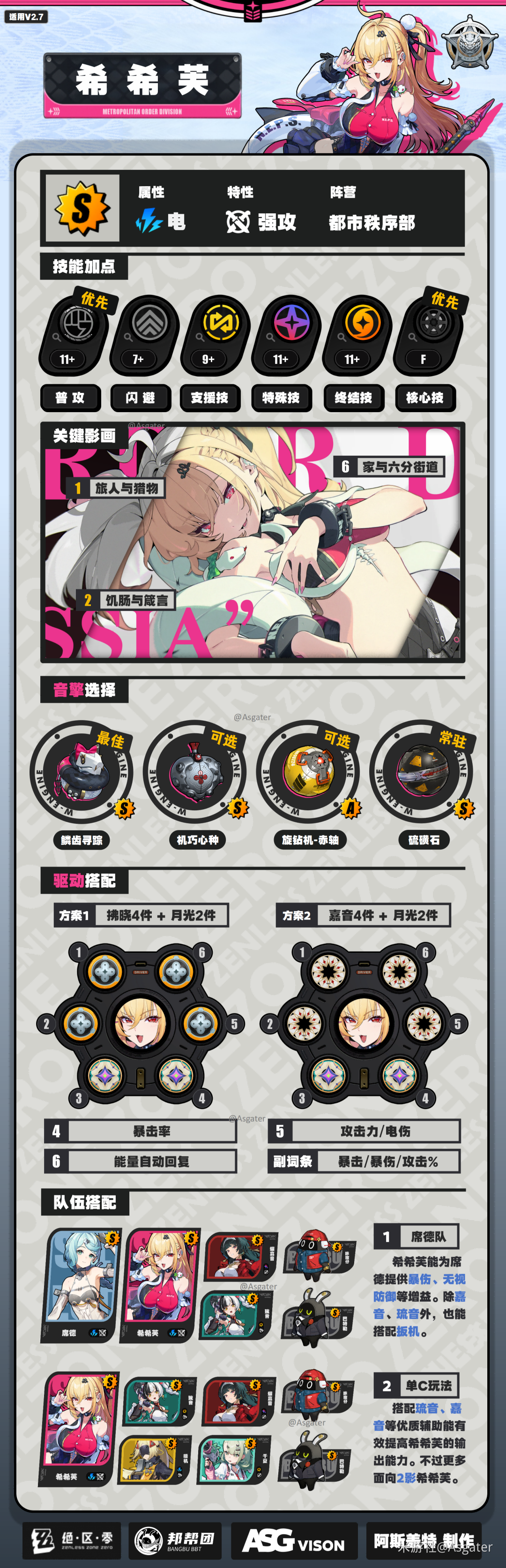① 升级核心技能提高全队电伤无视防御、蚀骨额外倍率提升幅度。