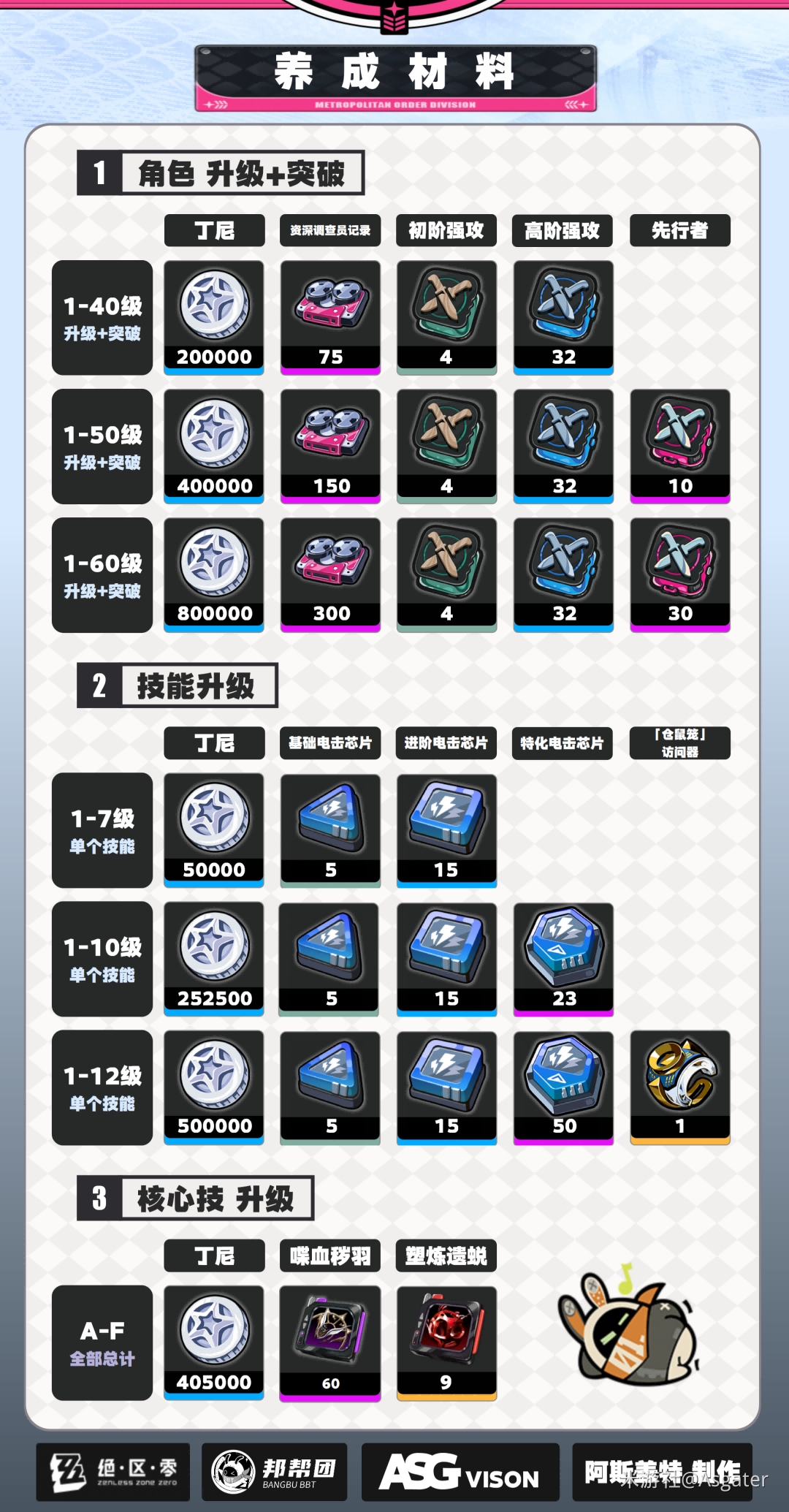 【角色养成材料表】