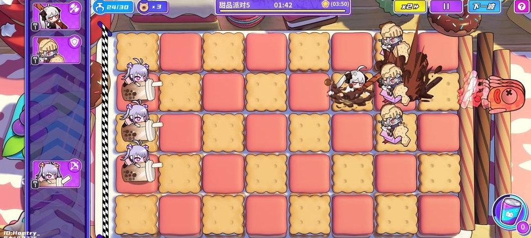 简单5倒是有一个速通技巧,尽量点击右上角的下一波,喂能量饮料给饼干骑士,用卷卷战士一波带走。时间大概1分半左右。
