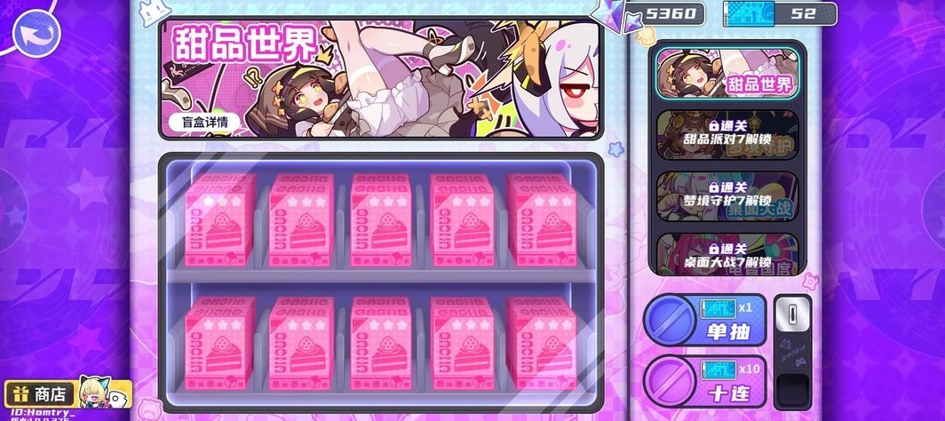 如图所示,抽卡是在甜品派对简单5解锁的,我们首先要打到甜品5解锁抽卡。每关最后有一个冰碗机会拖你的时间,能量饮料喂给卷卷战士打死它。(不懂可以回游戏翻图鉴-微型机。得知这是哪一个怪物)