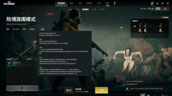 1、玩家进入游戏后,选择街机模式【险境突围】,然后开始匹配,匹配成功后就进入游戏。