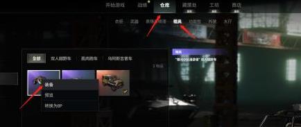 1、首先需要前往仓库-载具位置右键要装备的载具皮肤。