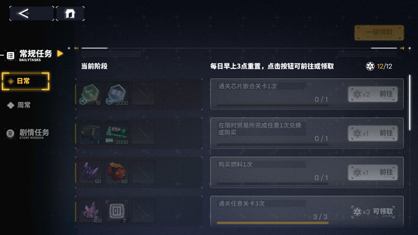 1、游戏中也会提供各种日常以及周常任务,只需达成要求就能通关领奖。
