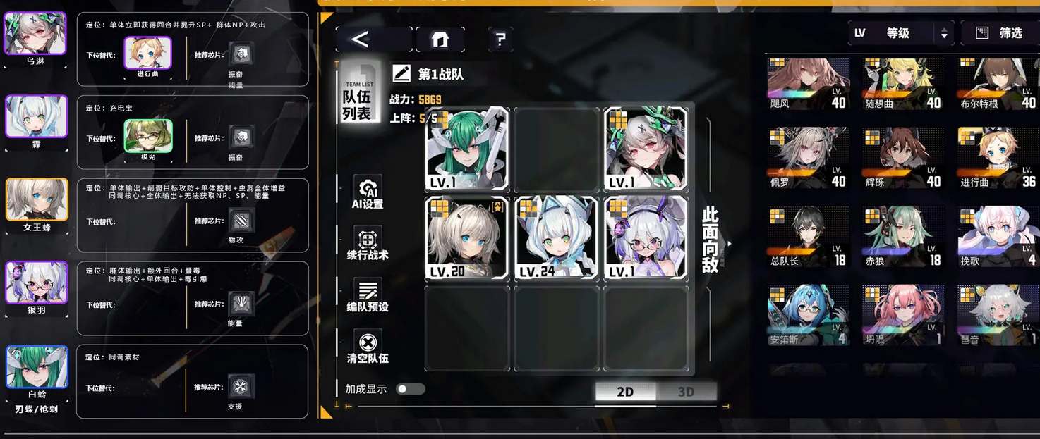 2、双同调队:乌琳/进行曲+霖/极光+女王蜂+银羽+白蛉/刃蝶/枪刺