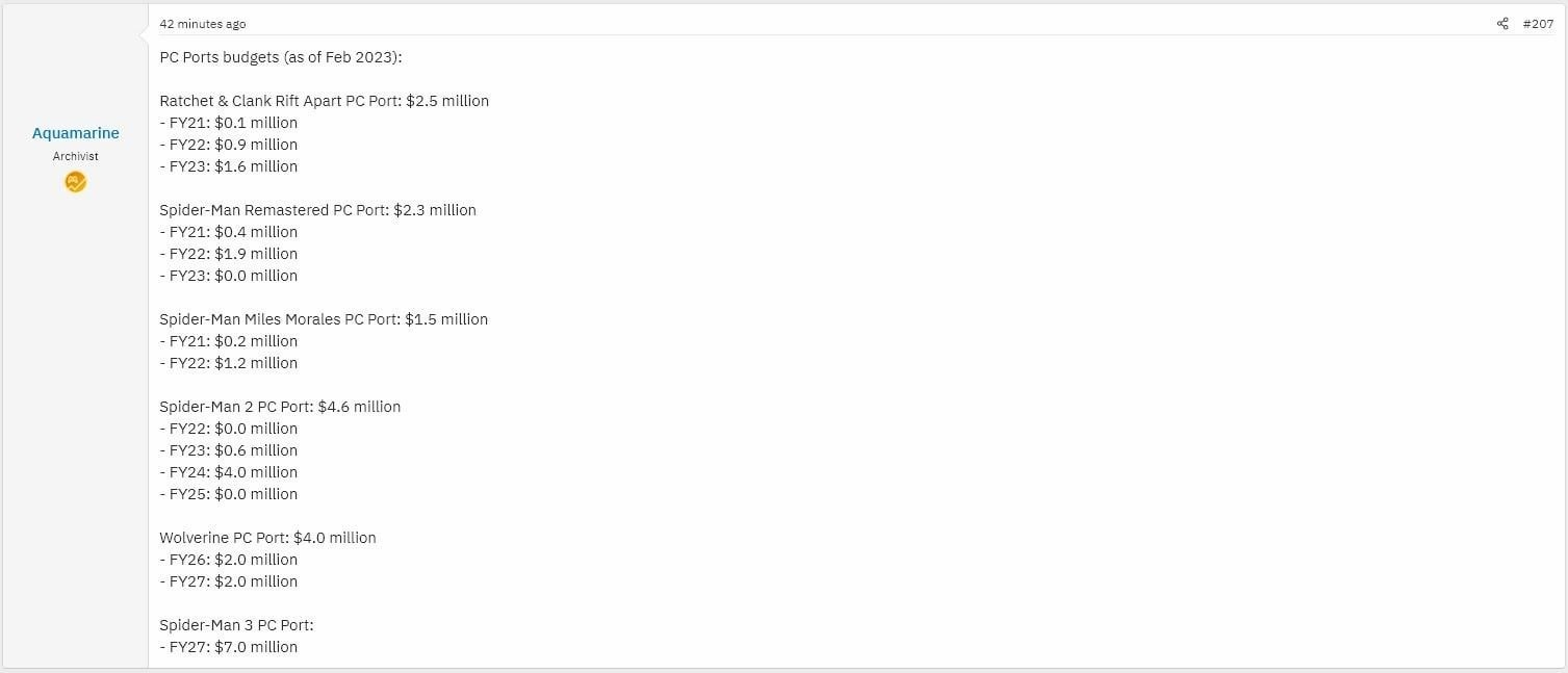 最近索尼失眠组遭到黑客攻击,导致大量内部文件和数据泄露。失眠组旗下所有游戏PC版的移植成本已曝光,而《漫威蜘蛛侠2》PC版最快在2024年内发售。