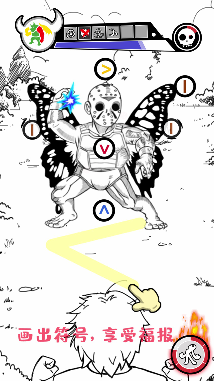 亿拳超人游戏是一款有着趣味绘画玩法的指尖闯关游戏,每一个关卡都会给出不同的人物以及符号,你需要根据符号的外观以及顺序正确的将这些符号画出来,非常考验你的指尖绘画能力以及判断能力哦,如果不小心画错了就会让你小命不保!