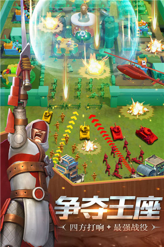 兵人大战是一款玩具兵题材的SLG策略手游。3D复古的军官形象,活泼生动的玩具造型,无论是手持雪茄的大兵还是性感狂野的女军官;无论是高冷朋克的小丑女还是温婉可人的牧羊女;无论是男友力爆棚的韦恩还是嬉皮洒脱的本杰明。总有一款你会喜欢。专属的荣耀铭牌、帅气的集团军旗帜、百变的指挥部外观,丰富的游戏感观不容错过!兵人大战游戏向玩家传达的主旨是:童年,不只是回忆……重新回到你童年中最美好的时光,踏上令人兴奋的冒险旅程。带领绿色的小小兵人、遥控飞机、橡皮鸭子、变形金刚等心爱玩具组成兵团,在卧室、走廊、客厅和后院抵抗邪恶军团的入侵!