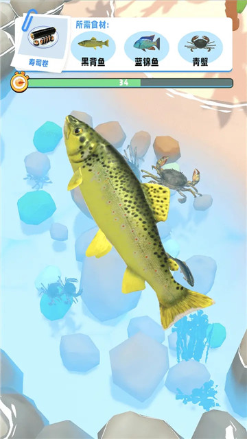 作为一名海洋猎手,让我们准备好自己的食材,开始探索吧。抓海鲜,做出美味佳肴。