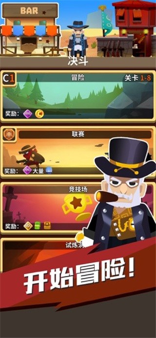 3.西部冒险:窄路相逢,勇者胜! 选择强大的牛仔,在西部征程中进行一对一枪战!