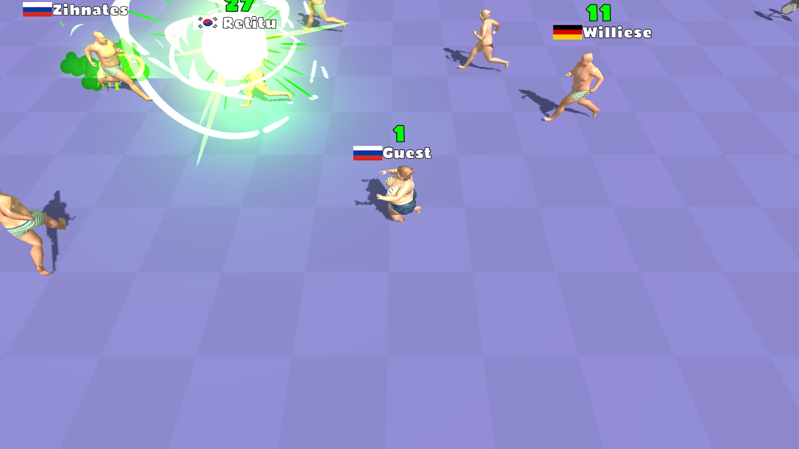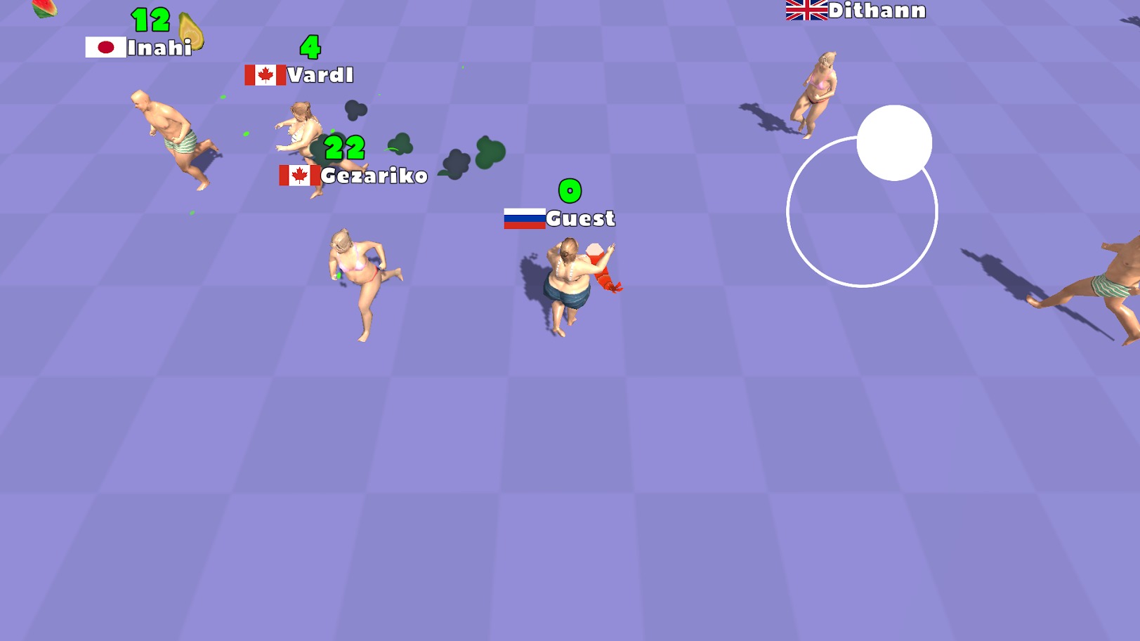 游戏采用io模式,上下左右滑动手机屏幕躲避对手的撞击,同时获得更多的水果、蔬菜和哑铃,如果再次吃到肉类还会变胖。