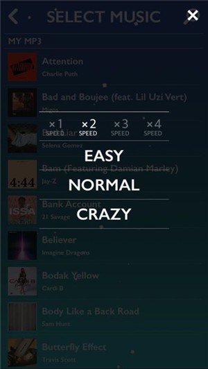 1. 丰富的节奏感的歌曲,玩家需要通过划动手指的方式进行选择,踩准每一个节拍,获得高分。