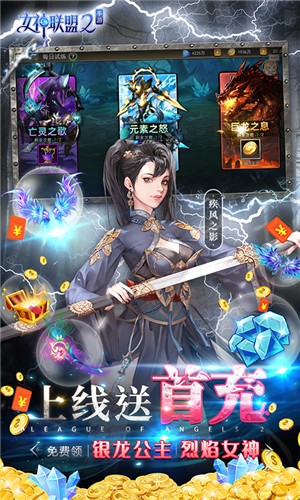2. 创角即赠满V特权、2万钻石、千万金币惊喜好礼,免费领取红品质自选女神、橙品质坐骑珍兽·炎狮。