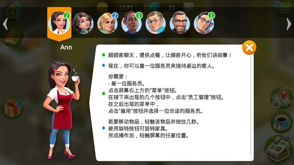 2. 游戏的操作非常的简单,轻松完成各项任务,获取丰厚的奖励人,让你的咖啡店更加的出名。