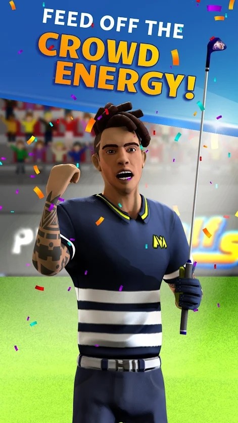 2、解锁出色的高尔夫球手,学习其出色的技能,增强您的游戏玩法并与对手战斗;