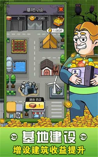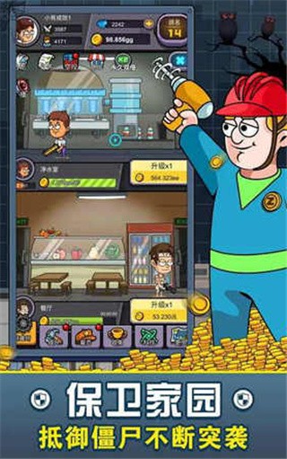 2、建立自己的避难所,动动手指,最后就能赚到金币。