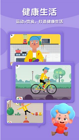 2,实时逼真的锻炼,激发孩子对运动的兴趣,原创概念插图,独特的声音设计,搭配食谱,培养健康饮食意识。