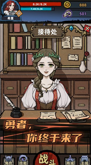 4、暗黑画风,地牢类型冒险,召集众多的英雄角色来打造强大的团队;